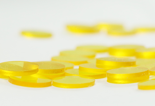 人眼具有抵御視網(wǎng)膜光損傷的自然防御機制?,角膜和晶狀體可阻止紫外線(波長<400nm)到達視網(wǎng)膜。同時,隨著年齡的增長,晶狀體顏色不斷變黃,可以濾過短波長藍光(波長 400~500nm)[2]。但白內(nèi)障手術(shù)后,人眼晶狀體自然防御機制消失。為了減少視網(wǎng)膜損傷、優(yōu)化入眼的光譜組成,人工晶狀體材料中添加了不同的吸收劑:添加紫外線吸收劑以過濾紫外線,人工晶狀體呈無色透明狀態(tài);額外添加藍光吸收劑,過濾了藍光而呈現(xiàn)黃色,也叫做藍光濾過型人工晶狀體。
